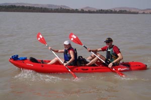 The field of competitors included some of the most experienced adventurers as well as many new faces who were to set off in windy conditions along the Vaal dam for a 12km paddle as the first leg. The heat was on from the start with Team Cyanosis, the male pair of Team Hawkstone and the Red Ants sharing waves to break away to the first check point. Team Hawkstone put in a good push to exit the water first and head off on a short 5km run/hike which split the teams up seeing the Ants make it out of transition first.