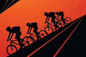 The towee should follow the line of the tower as closely as possible; riding to one side will pull the tower off balance. Crashes will certainly result when either of the riders makes a sudden change in speed or direction. The objective of towing is not to drag the towee through the race but to increase riding momentum. “It takes the edge off for the person being towed and allows them to keep up and recover,” says Mackintosh. As such, neither rider should be forced to increase their effort; towing averages their efforts. Hardenberg wisely warns, “Tow too hard and you will soon find yourself in need of some towing.”