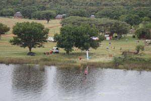 We were onto the second hike after another quick transition. Again, Alex kept us on the right track at a strong pace. We were hiking with a couple of other teams at a certain point, but seemed like they decided to take a turn-off where we kept going straight, only to find the CP around the next tree. We had a nice adrenaline infusion when we stumbled over some ostrich eggs in the veldt, we picked up our pace but fortunately the mother was busy crossing another road. We decided that if the foofie slide was open upon returning to base, then we’ll quickly do the special task. It was, and Alex grabbed the handlebar-sliding-mechanism-thingy and me and Lizelle grabbed the smallest tubes we could find (this from prior experience of flat-non-moving-water tubing).