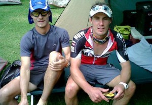 Last 30 odd km’s. The section can be described as limbo.  It is a hot lonely hilly part of the route. I knew it was coming and mentally toughened up for this leg as I had lost focus a bit in the previous leg. Weylin’s body started to take toll on this section and Waldus volunteered to cut his extra tube and offered to pull Weylin on the uphills. This made a huge difference in our time and helped Weylin a lot. Seeing that Waldus has a sub 10kg bike he was the man for the job. I also gave Weylin one of my ‘groen mambas’ when he hit the wall. 30 min later he was cycling 25km/h and we were trying to keep up. We finally hit the tar road and final turn off down to the river.