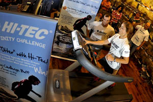 Store visitors and other entrants enjoyed watching the challengers on the treadmill and following their avatar, running against the Hi-Tec ambassadors, on the big plasma screen. “For Cape Town, this weekend, we’re keeping three avatars on the screen for the entrants to chase: Bruce Arnett, who will set a new time-to-beat on Saturday, Jeannie and a Mr Joe Average with a 10:00 time. This should improve the experience even more in that many entrants should be able to beat or come very close to Mr Average,” adds Little.