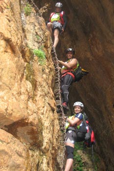 As always the hiking sections at the Ystervark races are spectacular, and the views from the top of the Magaliesberg were worth the steep climb to the top. We had established our lead over Uncharted now, with our decision to swim and we were motivated to make it back to Aasvoelkrans Nature Resort. But there was more excitement to come, after setting up our shelter for an “imminent storm” (safety equipment check), we began our descent of a 20m chain ladder from the stunning mountain range.