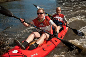 We had a great race starting with a quick run round town and battleing strong headwinds and big waves on the lagoon. We hugged the shores which unfortunately meant we overshot the river entrance and ran aground in the shallows. We pushed through the reeds, popping out just behind Pennypinchers to the comment ‘Livingstone I presume’ and a few leeches feeding on Caz. We ran all the way along the beach with the waves rolling in and sand as far as you could see. We ran the whole leg to get back in touch with the lead teams and opening a gap on the teams behind.