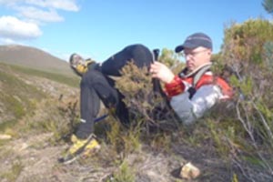 Feeling slightly refreshed, we started up the jeep track that led straight to the trig beacon where the next CP was. However, the mist came down and we could not tell which peak on our left was the highest, so we blundered off the track through the fynbos in the freezing mist – twice – in search of the trig beacon, which turned out to be 800m further along the track. We learnt that sticking to the road as far as possible is always a good option.