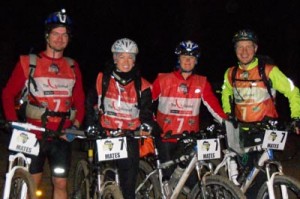 We marched into Gansbaai church hall for transition at almost midnight.  Some quick help from the medic on blistered feet, some sticky two minute noodles and not very tasty cans of soya mince, and a 20 minute nap made up our stop before we climbed on the bikes to head back out into the battle!  Children, we don’t need to mention that the first fall of the whole race was Cher, on the pavement outside the church, because she forgot you needed to have forward motion to be able to stay upright on two wheels.  And we certainly won’t mention that Pieter lost half of his clothes and needed to borrow tights, nor that the MATES team was in second-to-last place at this stage!  In this fairy tale, the team was sleek, well poised, and operating beautifully.