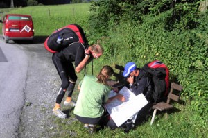 We’re now into Day 3 at Red Bull X-Alps and Pierre Carter remains in Top 10 (sitting in 6th most of today). News just in from James Braid, his support crew. In this photo, Pierre is planning a route to Grossglockner this morning with competitors from SUI1, FRA and USA.