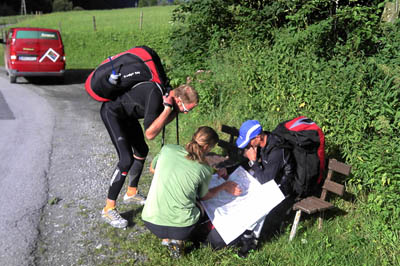 Christian Amon, who passed Pierre on foot shortly after the via ferrata (we had made a nav error), has now injured himself again (the third time in three races) and is also out. Maurer has snuck into the lead, and everyone is really just playing “follow the leader” at the moment. Maurer is probably playing “catch me if you can”. If he gets airborne, which I’m sure he will, he’ll start pushing far ahead of the rest.