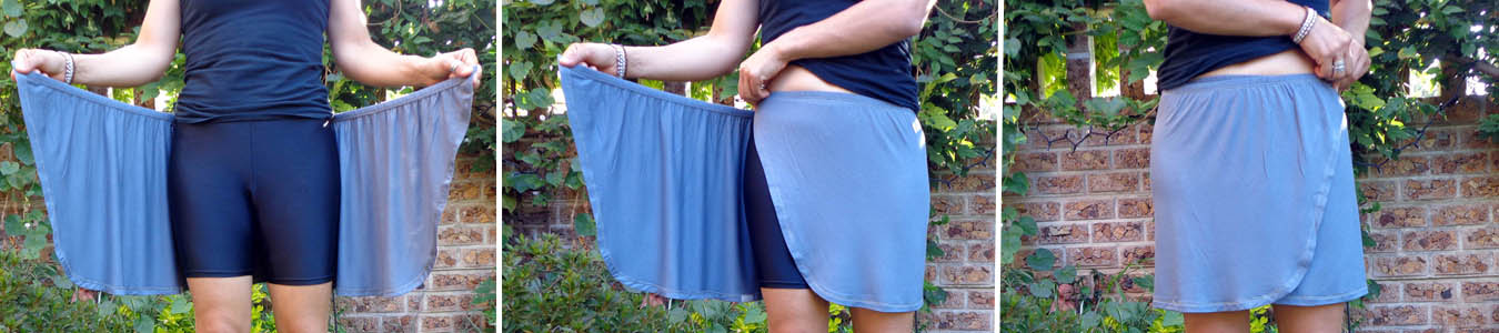 I’ve always thought that running skorts are too cute – but they’re often too short and I don’t like those inbuilt shorts or undies. My skilled and talented mom has come up with this fabulous ‘Run Wrap‘, which evolved from me wanting a sweet running skirt and her friends wanting something they can wrap over gym pants to cover their bottoms: perfect for going in and out of the gym and also for popping into the shops after an exercise session.