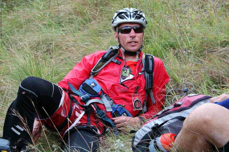 Christo Viljoen has been struggling with diahorrea since during Wednesday. He’s not the only one as I’ve heard of a number of other racers with upset stomachs – vomitting sometimes added to the mix. Christo hasn’t been able to get much down, even water, so he is feeling drained. Craig Powell has been carry Christo’s pack while he recovers. Christo said he tummy was starting to come right so he’ll get some food in at transition – his first food in almost 24hrs. He’s an experienced, strong and steady racer so he’ll no doubt return the favour to help his teammates as he recovers his strength.