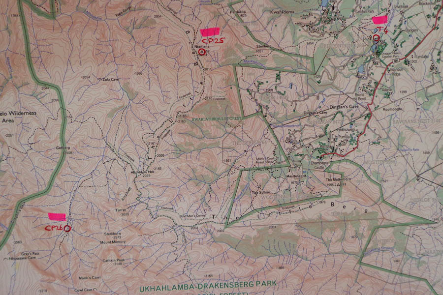 Just to give you an idea, this is a topographical map showing the transition (T4) and the location of CP25 and CP26. The teams also have hiking maps for the mountains. Not all roads/paths indicated are correct…