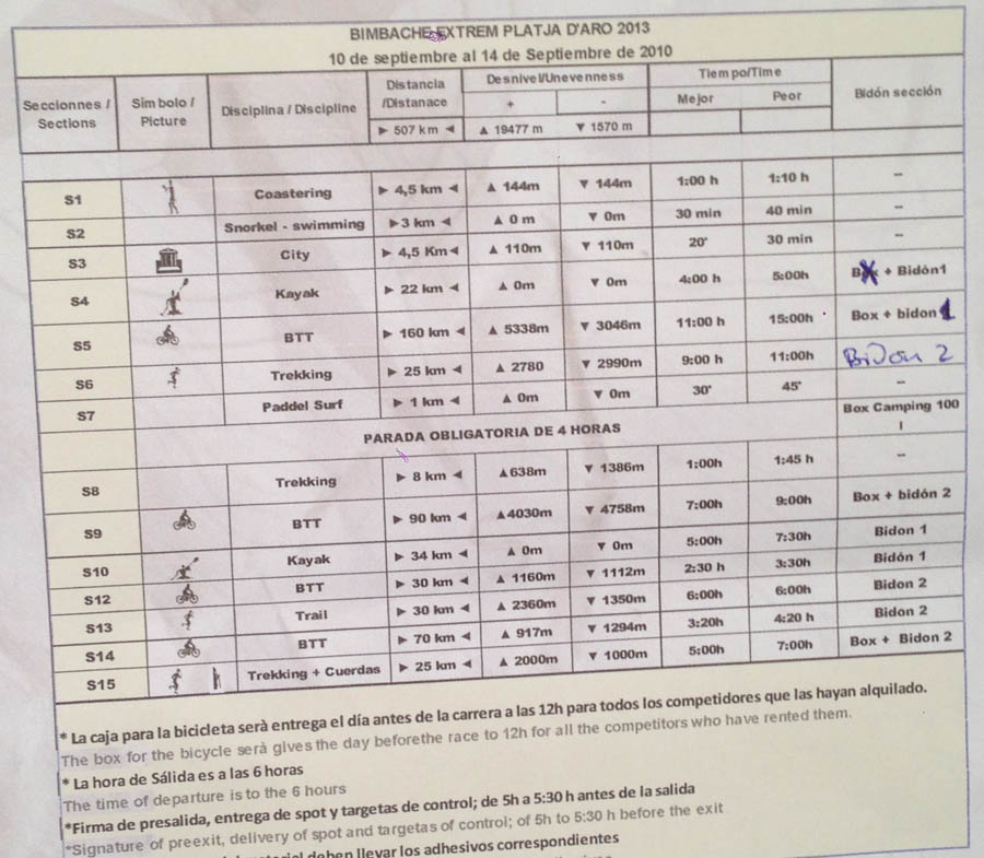 Bimbache route schedule September 8, 2013 AdventureLisa News, Reports & Results 0 Raid Bimbache starts at 06h00 on Tuesday morning, 10 September. This is the route breakdown. Winners are expected to take three days to complete the course. Good luck to Team Cyanosis. BimbacheCyanosis