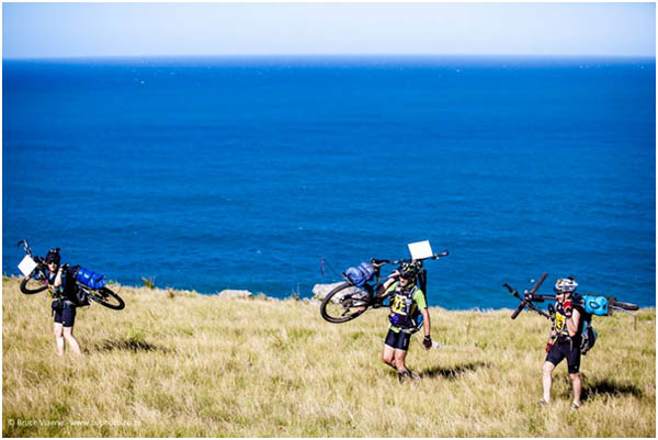 We left around 10am, another beautiful day, maybe made more so by the knowledge that we would soon be finished the race. The start of the leg was a stunning ride along the hard beach sand in the morning sun, just a truly beautiful experience that could even be appreciated after so many days of racing. We then headed up a “cattle path” after some indecision over the all too familiar sight of boulder hopping our hike a bikes, and at the summit saw the ever smiling faces of the camera guys and their great words of encouragement. Some more pushing and slow riding up the hill and we joined a road and started the rest of the bike leg. The kms seemed to click by very slowly as we had to ride up and down a gorge and another river crossing, then another, then back onto roads of more constant gain and loss of altitude meaning more pushing of bikes before break neck descents on the other side.