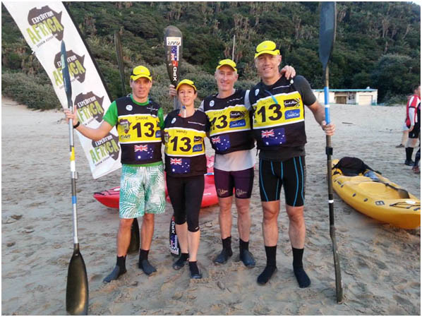 At around 7:15am, the start horn sounded, and 80 x kayaks were being dragged into the angry surf by 160 energetic adventure racers. Our team got going well, but it seemed in front of us that the large waves sets were not about to cease anytime soon (I am still half convinced Stephan waited for the biggest waves to come before starting the race). As we approached the last line of breakers, we rode up the face of a wave that promptly flipped our kayak nose over tail and dumped Wendy and I into the surf. Swimming after a boat being dragged away by a wave whilst holding a paddle and dealing with a broken rib is not a sport I would recommend.After tasting a few salty mouthfuls of Indian ocean water, we scrambled back aboard, but had lost sight of our team mates. Off for the second attempt, we paddled out through a scene from James Cameron’s Titanic with bodies in life vests scattered all through the water amongst upturned boats. Just as we were about to clear the final breaker, we were hit broadside by a jettisoned kayak and we continued our “rinse and spin” cycle yet again. In all, it took 4 x attempts to clear the waves, and we were happy to be reunited with our other 2 x team members safely bobbing over the large swell in their kayak past the waves.