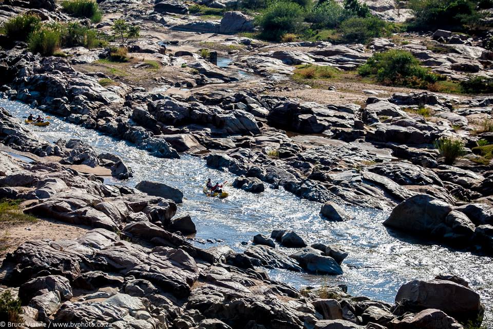 Those teams which didn’t make the cut off 14h00 kayak start time today will hit the water tomorrow and enjoy the paddle and the rafting. The anticipated action at the weir is slightly offbeat as the water has been redirected, forcing teams to portage across a long stretch of silt. There follows some fun rapids and then a hilly trek. The lead teams’ navigators all saw a smoother option on their maps and cut a chunk out of the route envisioned by the organiser, lets see if the less experienced teams do the same.